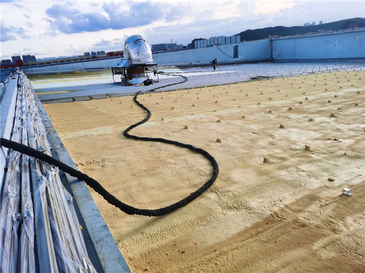 1、噴涂過程中隨時檢查發泡質量,發現問題立即要求停機,查明原因后重新作業,接槎處必須結合良好。施工前應制作樣板模擬施工,經驗證施工狀況正常后再進行大面積施工。第一遍噴涂一般5mm,以提高與基層粘結力,根據每遍噴10—15mm控制厚度,至達到35mm。